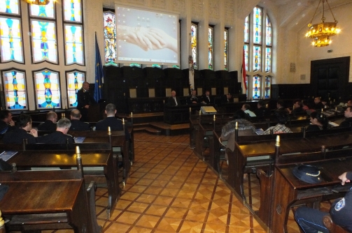 A megjelenteket a Hajdú-Bihar Megyei Rendőr-főkapitányság nevében Dr. Lingvay Csaba r. ezredes, megyei rendőrfőkapitány-helyettes, majd vendéglátóként a Hajdú-Bihar Megyei Önkormányzat Közgyűlés elnöke, Pajna Zoltán köszöntötte. A Hajdú-Bihar Megyei Cigány Területi Nemzetiségi Önkormányzat nevében, Bernáth Bálint elnök szólt a megjelentekhez.