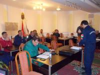 Az elméleti felkészítést követően a gyakorlati feladatok következtek. Üzembejárás keretében a résztvevők megtekinthették a baleset feltételezett helyét a MOL Nyrt. déli telephelyén feltételezett baleset helyszínét, és a települési törzzsel közösen dolgozhatták ki a szükséges intézkedéseket, ezeket a műveleti naplóban dokumentálták és térképen ábrázolták, majd jelentést tettek a gyakorlatvezető részére.