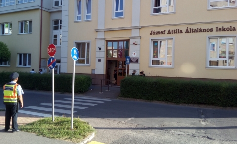 Rendőrök és polgárőrök is vigyázzák a gyerekek balesetmentes közlekedését az iskolák környékén Berettyóújfaluban.