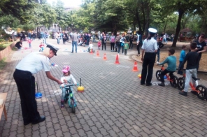 A Debreceni Rendőrkapitányság baleset-megelőzési előadói a napokban ellátogattak a helyi Görgey Óvodába, ahol játékos feladatokon keresztül már a fontosabb jelzőtáblák jelentéseit is ismertették a kicsikkel, majd a rendőrök egy akadály pályát állítottak fel az óvoda udvarán, amin a gyerekek kipróbálhatták a biciklivel való közlekedési tudásukat. A Közlekedésrendészeti Osztály munkatársai a rendezvényen a jelenlévő szülőkre is gondoltak, akik kresztudásukat egy tesztlap kitöltésével ellenőrizhették le, valamint lehetőségük nyílt a felnőtteknek a „részeg szemüveg” kipróbálására is.