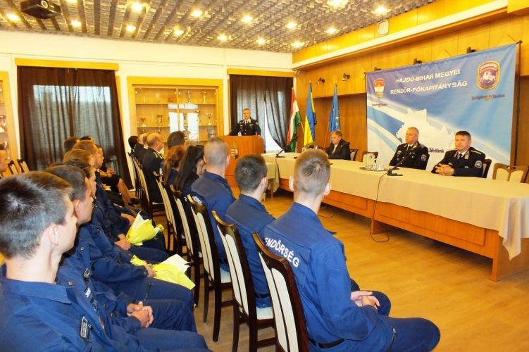 A 13 tiszthelyettes a köszöntőt követően megismerhette a Hajdú-Bihar Megyei Rendőr-főkapitányság szervezeti felépítését, valamint a megye aktuális közbiztonsági és bűnügyi helyzetét.