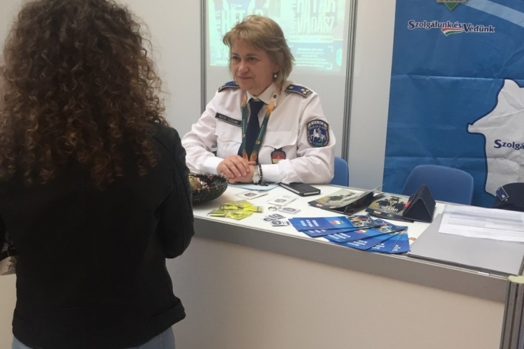 A Hajdú-Bihar Megyei Rendőr-főkapitányság toborzócsoportjának tagjai 2018. november 7-én egy Debreceni állásbörzén várták a határvadász-hivatás iránt érdeklődőket.