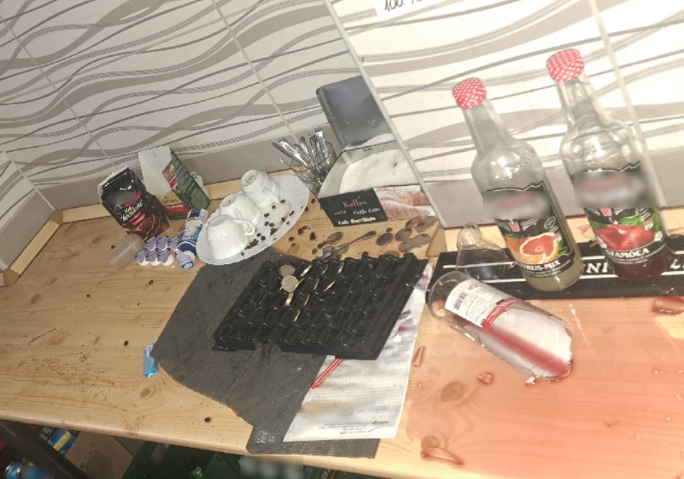 Miután úgy ítélte meg, hogy kellő rombolást végzett és az alkoholos italokat már nem érezte erejéhez méltó ellenfélnek, haragját a berendezési tárgyak sínylették meg. Ezután egy kávéfőzőgép, a kassza és két távirányító is áldozatul esett a férfi dühének, aki így közel 600 ezer forint kárt okozott.