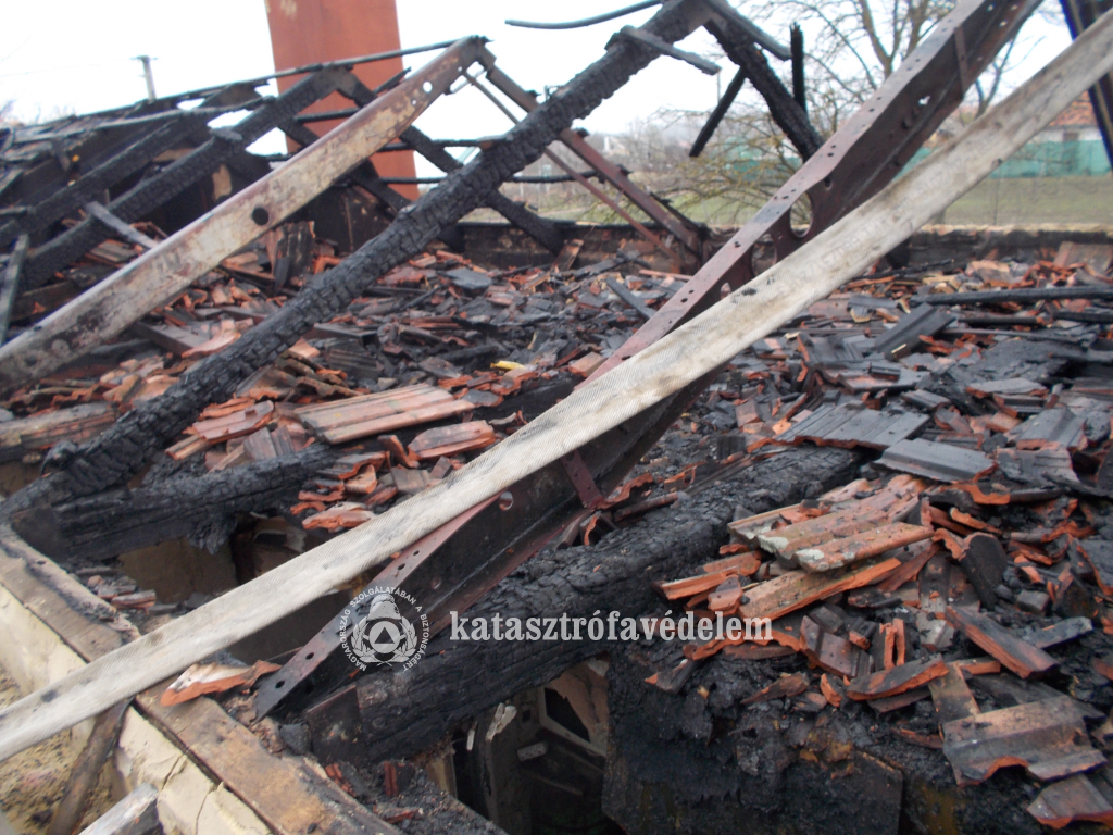 Kigyulladt egy műhelyként használt épület tetőszerkezete és padlástere kedden Hajdúszoboszlón, a Meggy dűlőben.