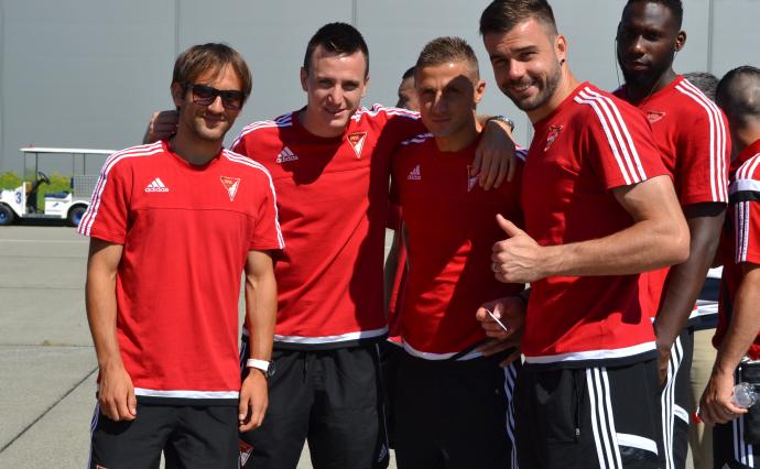 Másfélórás repülőút után a DVSC-TEVA gépe leszállt Riminiben, a Federico Fellini nemzetközi repülőtéren.Innen bő félórás buszútra volt a Loki szálláshelye, a négycsillagos Grand Hotel Primavera, amely San Marino egyik kisvárosában, Borgo Maggioréban található, és éppen piros-fehér színekben pompázik.
