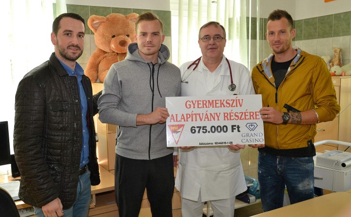 Az adományt hétfőn vette át dr. Mogyorósy Gábor, a DE OEC Gyermekgyógyászati Intézet egyetemi docense, a Gyermekszív Alapítvány ügyvezető alelnöke, dr. Horváth Zsolt, Tőzsér Dániel csapatkapitány és Jeney Domokos marketingvezető társaságában. A pénzt a kis szívbetegek gyógyítására fordítják.
