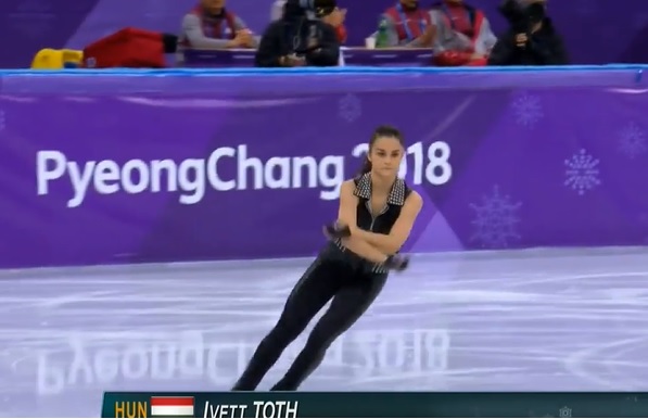 A 19 éves Tóth Ivett új színt vitt a műkorcsolyába azzal, hogy az AC/DC Black in Black és a Thunderstruck című számára adta elő kűrjét Phjongcshangban.Tóth Ivett szöges övben, bőrmellényben, rockzenére előadott rövidprogramja a zsűrinek is tetszett, és tovább is jutott, legközelebb péntek hajnalban láthatjuk – ekkor már a Carmen zenéjére fog korcsolyázni.