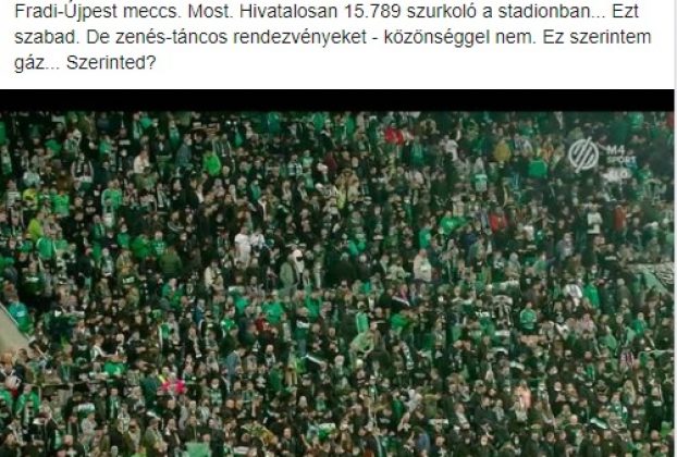 Gáznak érzi, hogy a focimeccseken lehet csoportosulni, de a zenés-táncos rendezvények korlátozva vannak. Fradi-Újpest meccs. Most. Hivatalosan 15.789 szurkoló a stadionban… Ezt szabad. De zenés-táncos rendezvényeket – közönséggel nem. Ez szerintem gáz… Szerinted? – hívta fel a figyelmet a Fradi-Újpest (2-0) meccsen látottakra Kocka Géza, vagyis MC Hawer. Ötletes is van, hogy mit kellene ehelyett … Bővebben: Mi volt ez a tömeg a Fradi-Újpest meccsen? MC Hawer nagyon kiakadt