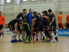 A mérkőzés búcsúztatással indult: utolsó mérkőzése volt ez Füzesi Csabának, akiktől a társak meglepetéssel köszöntek el. Az ünnepi hangulat a mérkőzésen is folytatódott: agilisen kezdett a hazai csapat, már az első percben több védést kellett bemutatnia a vendégek kapusának, Szuri Zoltánnak. A hazai fölényt Végh Ádám váltotta gólra, majd Pál Lóránt találatával már 2:0-t mutatott a tábla. A 11. percben Németh Richárd góljával szépítettek a vendégek, ám Végh Ádám újabb találatával ismét kettő volt közte (3:1). A játékrész közepére a vendégek is megérkeztek a meccsbe: Ignéczi Balázs majd Pirik Dávid góljaival egál lett, majd szünet előtt az első emberelőnyt góllal használták ki a vendégek: Németh Richárd góljával a vendégek kerültek előnybe (3:4).