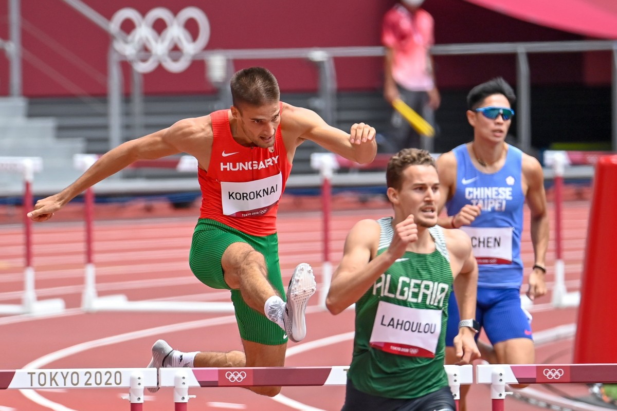 Koroknai Máté az előfutamban kiesett 400 m gáton a tokiói olimpia atlétikai versenyeinek első napján.