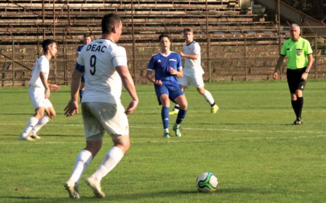 Az újonc Sportiskolával játszott döntetlen után első győzelmére készült a DEAC megyei I. osztályú második csapata szombat délután, Katona László tanítványai a Hajdúböszörményt látták vendégül az Agrártudományi Centrum sportpályáján. Riválisunk tavaly az utolsó helyen zárta a bajnokságot, s idén is vereséggel kezdett, így a mieink tűntek a találkozó esélyesének, különösen annak tükrében, hogy néhány NB III-as játékosra is számíthatott vezetőedzőnk.