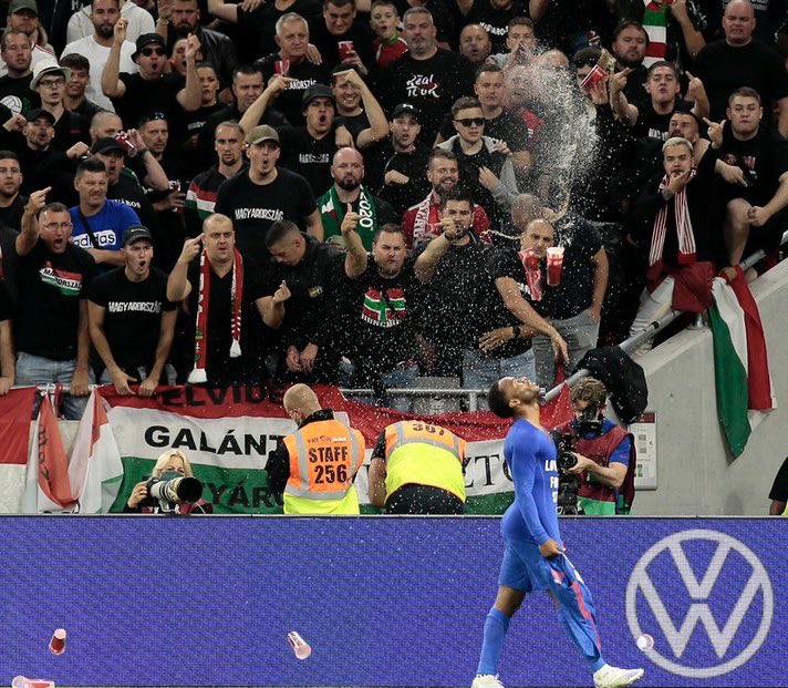 A Puskás Arénában rendezett meccsen – amelyet az angolok nyertek 4-0-ra – a magyar drukkerek egy csoportja gúnyosan adott hangot a nemtetszésének, amikor az angol játékosok rasszizmus ellenes gesztusként féltérdre ereszkedtek a kezdés előtt, majd a gólok után a hazai szurkolók műanyag poharakat és egyéb tárgyakat dobáltak a pályára, illetve rasszista rigmusokat énekeltek. A nemzetközi szövetség (FIFA) vizsgálatot indított az ügyben, majd szeptember 21-én közölte, hogy a magyaroknak a következő vb-selejtezős találkozójukat zárt kapuk mögött kell lejátszaniuk, további egy meccsre vonatkozó zárt kapus büntetésüket pedig két évre felfüggesztve szabta ki a szervezet. A magyar szövetségre ezen kívül 200 ezer svájci frankos (65 millió forint) bírságot szabott ki a FIFA.