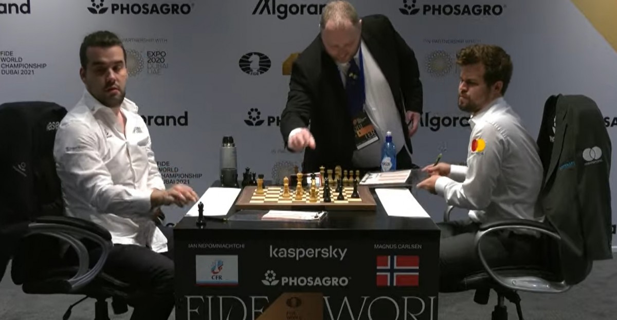 Döntetlennel zárult a címvédő Magnus Carlsen és kihívója, a világos bábukat vezető orosz Jan Nyepomnyascsij hetedik partija a dubaji sakkvilágbajnoki döntőben, így a norvég nagymester 4-3-ra vezet.