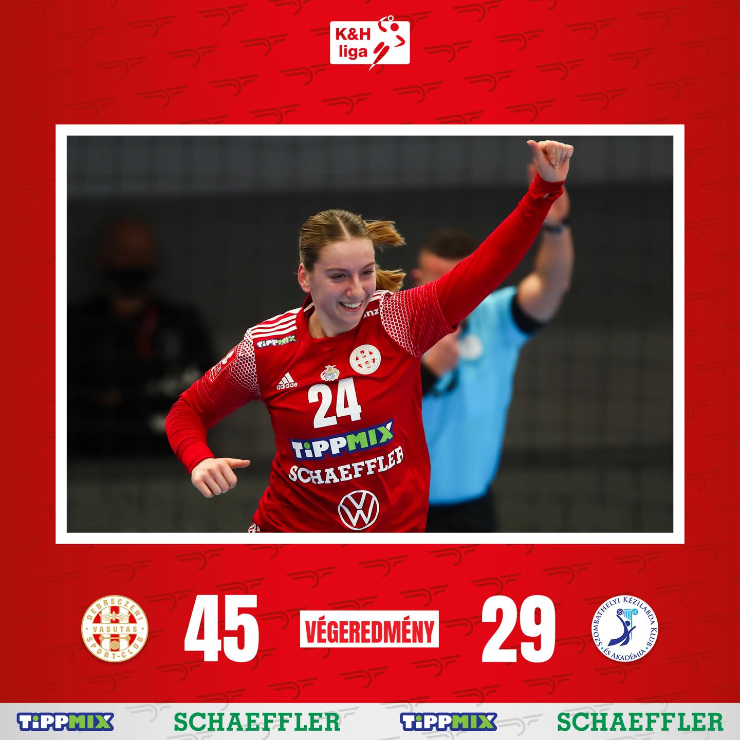 A DVSC otthon 45-29-re legyőzte az utolsó helyen álló Szombathely együttesét a női kézilabda NB I pénteki mérkőzésén.