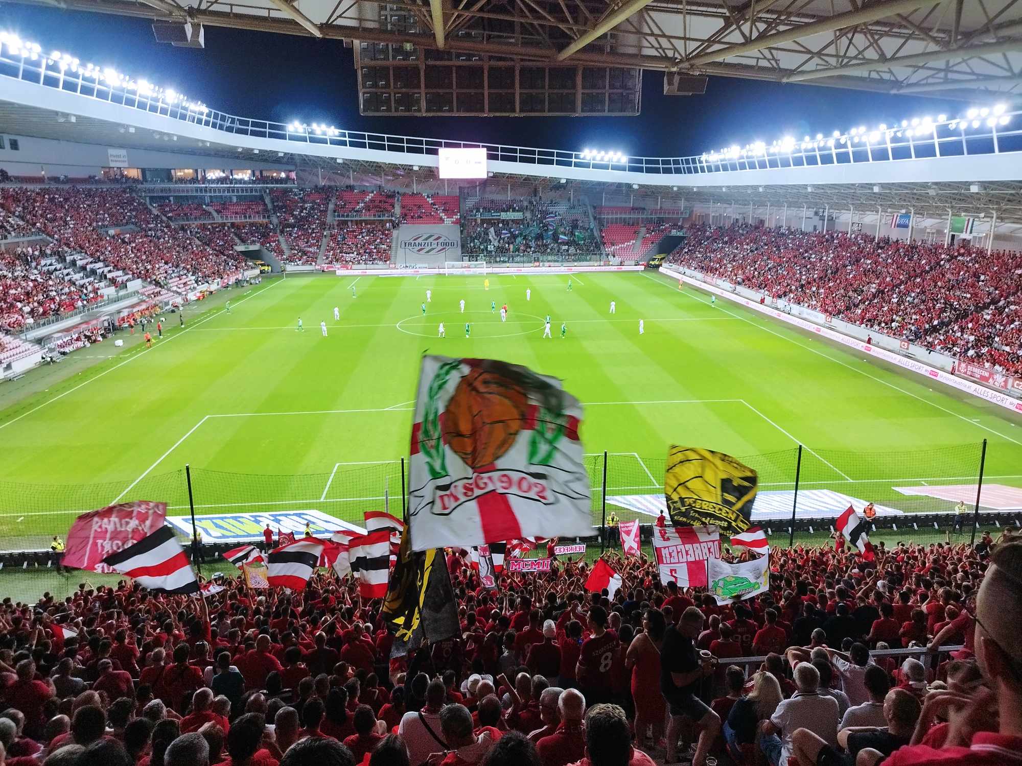 Nálam ez a tökéletes meccshangulat, amit mindig is szerettünk volna megtapasztalni ebben a létesítményben. Az itt leírtakból tökéletesen látszik, hogy a tizenkettedik játékos ezúttal is bombaformában volt a lelátón, de nagy kár, hogy a gyepen lévő játékosaink nem igazán fogtak ki jó napot. A számunkra rossz ómennek számító észak-macedón Aleksander Stavrev kezdő sípszavát megelőzően még érdemes megjegyezni, hogy ezúttal a beléptetés zökkenőmentes volt, de a szektorunkba belépve láttuk, hogy bizony jobb volt előtte alapozni, hiszen a büfék ezúttal is elestek már a kezdés előtt, így nem sok reményünk lehetett a frissen csapolt sörre és utólag a jó kezdésre sem. (Az előbb említett sípmester 13 éve vezetett egy Európa-liga csoportkörös meccset nekünk, ahol 5-0-ra kaptunk ki emberhátrányban az ukrán Metalist Harkivtól.)