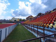 Ehhez hozzájött még az intenzív napsütés, valamint az a tény, hogy a vendégszektorban állomásozó szurkolóktól később a mérkőzés közben éhes szúnyogok hada igyekezett minél több vért venni. Ezt leszámítva egész jó kis pálya lenne, de a lelátókra ráférne némi renoválás, hiszen néhol már-már balesetveszélyesek voltak a betonlépcsők. Ellenben pluszpont volt, hogy az atlétikai futópályát korrektül megcsinálták. Mosdó gyanánt két mobil mellékhelyiség szolgált, a kézmosást pedig a vendég lelátó szélső sarkánál elhelyezett „jól van az úgy” csapteleppel oldották meg.
