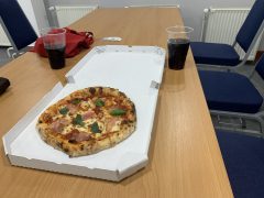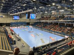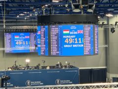 Szünetben némi frissítőt igyekeztünk magunkhoz venni, ami után beálltunk a büféhez, amit úgy gondoltunk, hogy jó ötlet lesz, hiszen tavaly a norvégok ellen EHF EURO CUP meccsen nagyon hamar ki voltam szolgálva. Most ezúttal nem így történt, így némi vigaszt jelentett, hogy igen közelről láttuk az oldalvonal melletti eseményeket. Itt több lerohanást és üres kapus gólt is ünnepelhettünk miközben a frissítőnkre vártunk. Ami a büfé árait illeti: egy szalámis vagy sonkás bagettet 1200 forintért adtak, de mogyorót és ropit és több fajta csokit is lehetett venni a töredékéért, míg az üdítő és a csapolt sör közel egy Bethlenbe került. Ezek után elfoglaltuk a helyünket az emeleten, majd miután már nagyon vezettek a csajok kipróbáltuk a fenti büfében kapható nápolyi stílusú pizzát. Egyet 3500 forintért adtak, ami egy embernek bőven elég, de éppen két ember is képes csillapítani vele az éhségét. Az utolsó percekben már csak az volt a kérdés, hogy elérjük-e a bűvös ötven gólt, de végül a britek cserekapusa keresztülhúzta a számításainkat és 49-11 lett vége. Utoljára egyébként a mérkőzés legjobbjának választott Faluvégi talált be, aki hét gólját ugyanennyi kísérletből érte el, így nem volt érdemtelen ez az elismerés.