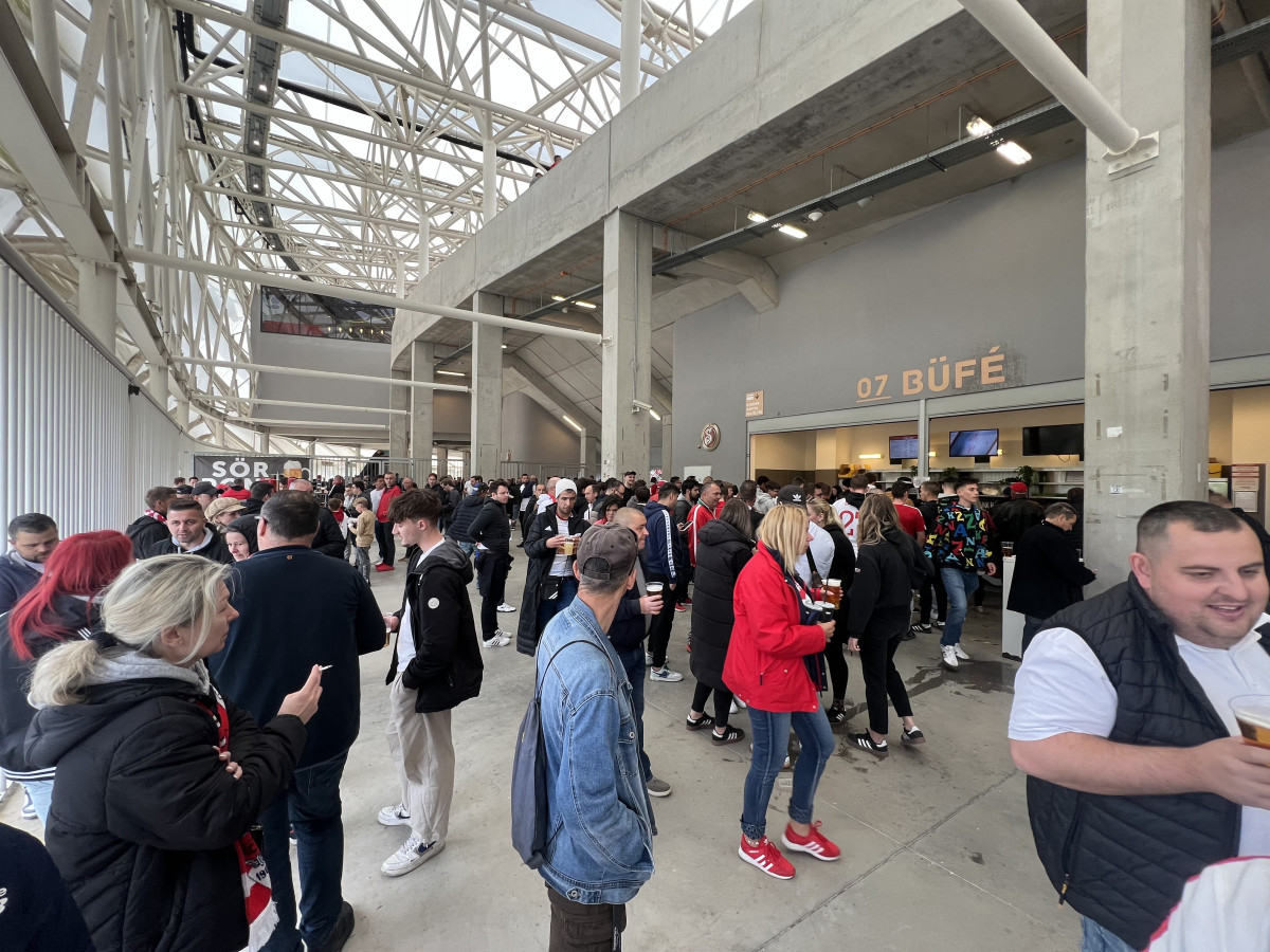 A meccs tétje érződött a városon: a tömegközlekedési eszközök zsúfolásig teltek. A villamoson, amivel én is utaztam, szó szerint heringparti volt. Leszállva hömpölygött a piros-fehér tömeg a Nagyerdei Stadion felé, mintha csak a Ferencváros vendégszerepelt volna Debrecenben. Körülbelül akkor szokott ilyen tömeg lenni a stadion környékén. A második félidőben 8064 főt írtak ki az eredményjelzőre – ez nagyjából megfelelt az általam megbecsült kilencezernek.