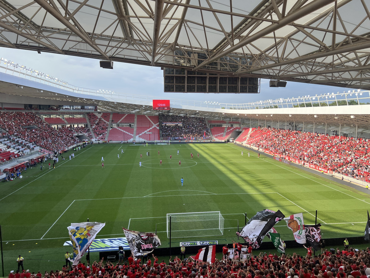 Sokan váltottak jegyet, köztük sok „divatszurkoló” is, akik közül többen azt sem tudták, hogyan kell használni a beléptető kaput. Aki pedig a sörfesztiválról érkezett vagy épp csak „kicentizte” az időt, az lemaradt a kezdésről. A sípot egyébként a tavasszal botrányosan tevékenykedő Bognár Tamás fújta. Nekem személy szerint sikerült beérni kezdésre, a stadionban pedig fergeteges volt a hangulat – zászlóerdők és rigmusok kíséretében.