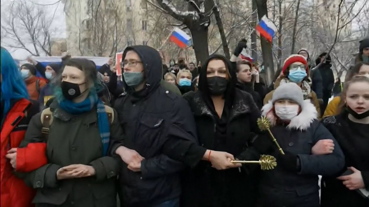 A tüntetésszervezés rendjének megsértése szerint Moszkvában átmenetileg őrizetbe vették Moszkvában Julija Navalnaját, a letartóztatott ellenzéki politikus felségét, akit egy tiltakozó akcióról szállítottak el rohamsisakot viselő, gumibottal felszerelt rendőrök mikrobusszal. Navalnaját a jegyzőkönyv felvétele után elengedték.