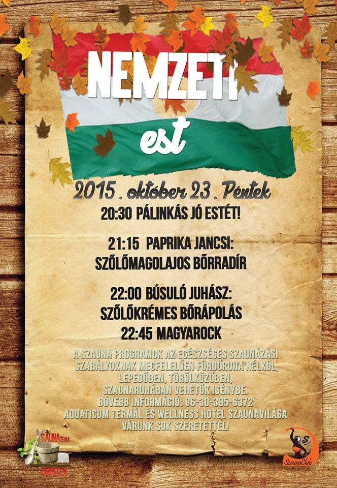 22:00-kor Sanyi szőlőkrémét kenheti magára a szauna közönsége, majd 22:45-kor Tamás zárja az estét Magyarock című jeges-orosz felöntésével!