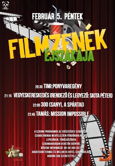 Február 5-án, pénteken a filmzenék játsszák a főszerepet az Aquaticum szaunavilágában.