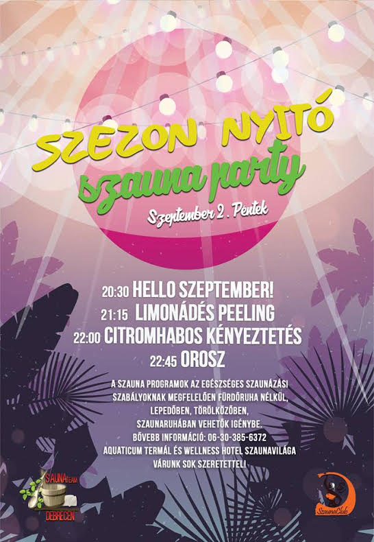 Fergeteges szauna esttel indul a szezon az Aquaticum Termálfürdő Szaunavilágában.